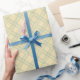 Ljusstark, rolig pastellförpackad gult som är papper med en subtil diagonal geometrisk mönster av förreglande fyrkanter i en dammig grönt. Perfekt för vår, Påsk, babyduschar i elegant och munterhet.