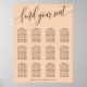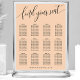 Hjälp dina gäster att hitta sina platser med lätthet med denna eleganta mjuka peachfärgade sittplatskarta för bröllop. Designen har ett modernt, handskrivet "hitta din plats"-manus i svart, i kombination med en ren serif-teckensnitt för gästnamn och bordnummer. Dess sofistikerade minimalistiska estetik och varma peach-ton gör den till ett mångsidigt val som vackert kompletterar en mängd olika bröllopsteman, från romantiska trädgårdsceremonier till moderna inomhusmottagningar. Denna layout är perfekt strukturerad för hög läsbarhet, vilket säkerställer en smidig övergång för dina gäster från ceremonin till firandet. Den ger en polerad och professionell touch till din speciella dags dekoration.