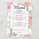 Guida dina gäster genom din bröllopsfest med detta eleganta mjuka persika- och rosa akvarellblommiga menykort. Perfekt kuraterad för vår- och sommarträdgårdsbröllop, den har romantiska ömtåliga rosor och sofistikerade svarta linjekonstaccenter. Denna anpassningsbara meny lägger till en tidlös, botanisk touch till din mottagningsbordssättning och matchar din blomsterbröllopssvit.