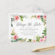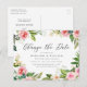 Behöver du ändra datum för din bröllopsdag? Våra eleganta blommiga "ändra datum" bröllopsförsening postkort är perfekta för att meddela gästerna om ditt nya bröllopsdatum. Det stilrena "ändra datum" postkortet har "ändra datum" i modernt kalligrafiskt typsnitt med en ram av rosa, rosafärgade, vita och persikofärgade vattenfärgblommor med livliga gröna blad. Anpassa postkortet genom att lägga till era namn, avsändaradress, bröllopsdetaljer, bröllopswebbplats, etc.