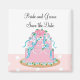 Elegant mjuk rosa bröllop kaka med vit, rosa och blå accent. Anpassa med brud och rum namn och datum efter behov.