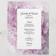 Anpassa söt Soft Rosa Hydrangea Bröllop Menu med detaljerna för den måltid som du kommer att på möhippan, förlovningsfesten, bröllopsmottagningen eller brunch genom att lägga till sallad eller första kursen, andra kursen och dessert eller tredje kurvan. Anpassa den med namn på briden och trippen, platsen och ceremonin i giftermål. Den här elegant-anpassningsbarna, bröllop-menyn, har ett digitalt förbättrat botaniskt foto av en rosa vattenblomma blommar.