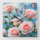 Mjuk Rosa ros Flower Blue Butterfly Fyrkantig Klocka