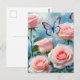 Mjuk Rosa ros Flower Blue Butterfly Vykort