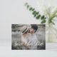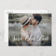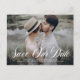 Spara vår dejt! Meddela din bröllop-dejt till familj och vänner med den här eleganten spara vykortet för datum. Den har blomstrande skript för elegant med klassiskt typografiskt överlägg. Anpassa genom att lägga till information om namn, datum, plats, foto och andra bröllop. Spara datum meddelande är perfekt för alla bröllop-teman och årstider. Den här designen finns som ett platta kort, magnet och vykort.