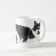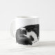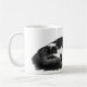 En ömtålig gråskala porträtt av en kattvila, ögon halvstängd i komfort. Den här designen gör att kaffebrytningen känns varm, försiktig och utbytbar.