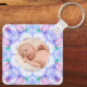 Mjuk Söt Pastels Anpassningsbar Julfoto Bild Nyckelring. Jolly och Festive Pastels Lila, Grönt och Rosa Anpassningsbar Jul Foton Bild Ram Round Dekoration. En mjuk färgstark nyckel-organisatör för din vinter- och lila- och grönt-multifärgad tog upp dekorationer i hemmet. Utformningen av ram är en rent geometrisk abstraktion som mönster tar på sig traditionella utmärkelser av färg. I pastel färg av lavender lilac med vintern träd grönt och söt rosa för ett Winter Wonderland. Anpassa den genom att ersätta de två fotona, både fram och tillbaka, med ditt eget för en nyckelsäljgåva från tidigt till familj och vänner för att fira jul. Bilden från lagrar visar en baby som sover. Skölj dina Yuletide-minnen. En underbar gåva till bästa vänner och bröder och systrar, mor- och farföräldrar eller par. En budgetvänlig keepsakpresenter, för firande eller för de första julen.
