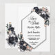 Den här eleganten röker blommigt med svartfärgad bröllop med geometrisk spara vid datum-kort kombinerar svart skönhet med den delikata tilldelningen av blommigtar med vattenfärg, vilket skapar ett verkligt spännande meddelande från giftermål som anger perfekten för din framtida händelse. Med anpassadet kan du enkelt anpassa kortet.