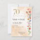 Spara datumet för en vacker 70-årsfirande med denna mjuka vildblomsdesign. Ömtåliga vattenfärgblommor och en varm, tidlös layout skapar ett elegant första intryck för en speciell milstolpe-samling. Perfekt för vår- eller sommarfödelsedagsfiranden, detta anpassningsbara kort kan personifieras med ditt namn, datum och födelsedagsdetaljer. Njut!