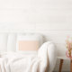 Fyllig kastkudde med mjuk vit & pastellrosa stapel design. Lägg till en mjuk touch i ditt vardagsrum.