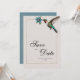 Denna mjuka, hastiga skugga och guld ram med vattenfärgsblått, grönt och färglös hummerfågel blommigt Bröllop spara-datum-inbjudan är ett perfekt val för par tittar för en vacker och enkel beröring till deras stora dag. Den här handmålade vattenfärgen hummingbird-blomman ram omger dina uppgifter om bröllop. Ge dina gäster en underbar första glimt av bröllop till kom. Denna inbjudan kommer att bli ett fantastiskt tillägg till era evenemang i bröllop.