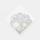 Halvgenomskinliga, mjuka, blå hydrangeas och vit ros på vit bakgrund till din middag party eller te.