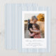 Ett klassiskt platt julkort med blekblå och vita ränder, ett 'Glad jul'-meddelande i ett traditionellt bläckpennsmanuskript med fullständigt anpassningsbar text under, och ett foto. Baksidan har samma randiga mönster, men det kan enkelt bytas ut mot ett foto om du föredrar det. Finns i olika färger och med olika julmeddelanden i min butik.