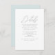 Romantiskt pastellblått visitkort för gästdetaljer i bröllop innehåller ett vackert kalligrafi-skript och ett delikat blått baksida av kortet. Visa den här söt blå bröllop-samlingen för att samordna bröllopsinbjudningar och svarskort.