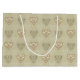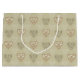 Här har vi en underbar presentpåse med en mjuk blommigt-dekorativa hjärtan mönster på neutraltens färgad. Den här väskan blir ett fantastiskt tillskott till en gåva till dina vänner och familj.