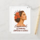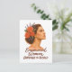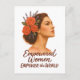En kvinna med ro och lavender i håret ser med tillförsikt till sidan. Texten "empowerment Women the World" (Förstärkta kvinnor i världen) visas elegant.