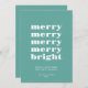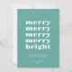 Ett modernt, elegant, elegant, Julhälsningar kort med minimalistisk typografi och en ren och enkel sammansättning i en ljus tealblått. Märk och bra tema för att upprepa "merry"-texter som leder till "bright". Anpassningsbar Julhälsningar och namnteckning nedan. Förfinade minimala semesterhälsningar för dem som uppskattar största enkelhet och elegans. Behöver du hjälp med att anpassa eller anpassa? Kontakta oss. Vi är lycklig för att hjälpa till. Jag önskar dig de lyckligaste helgdagarna!