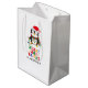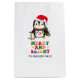 Sprid helgdag gladde sig över att den här vackra penguin hade en julhatt och trasslade in sig i färglös sträng ljus. Ett lekfullt men trendig stil som ger firande ett mysigt helgdag.