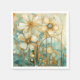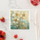Blommor i persiko- och beige-nyanser. Ljust tealblå bakgrund med beige skuggor.