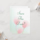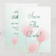 Vacker spara datum-kort med mjuka rosa pastell tulpaner på en mjuk grön bakgrund. Denna design är perfekt för ett bröllopstema men ser också bra ut på egen hand. Ingår i en komplett uppsättning bröllopsprodukter och även över 70 Zazzle-produkter.