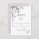 Ett bröllops-svarskort designat med mjuka vide och grenar i nyanser av lila och skotsk ljung. Framsidan innehåller: RSVP-detaljer, med vide-design på vit bakgrund och baksidan i en matchande nyans av lila. För att anpassa, infoga bara ditt svarsdatum i vår mall och ersätt provtexten. Se hela Soft Willows Lilafärgad, skotsk ljung brölloppskollektion.