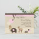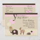 Inbjudan för flickamjukisdjurbaby shower med en elefant, en giraff och en sköldpadda som by omges, cirklar. Du kan använda bekläda och baksidaen av denna inbjudan att inkludera all din information om duschen.