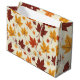 En vackert designad presentpåse med en charmerande fall av lövning mönster, perfekt för förpackningspresenter under höstsäsongen.