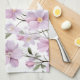 En kökshandduk prydd med ömtåliga rosa och lila akvarellblommor, som ger en elegant, feminin accent till matlagning, matrum och presentfärdiga heminredningar. Den mjuka pastellfärgpaletten och luftiga botaniska stilen tilltalar kvinnor som uppskattar raffinerade, romantiska detaljer i vardagliga hushållsartiklar.