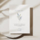 Minimalistisk blomsterbröllopsfest tackkort med ett ömt akvarell blomsterarrangemang med mjuka pastell dammig blå och vita blommor.