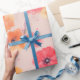 Mjuk, elegant och oändligt mångsidig, detta mjuka blommiga inpackningspapper har handillustrerade blommor i varma korall- och persikotoner, satta mot en lugnande Muted Blush.