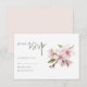 Den här OSA kort har en vacker, mjuk blommigt med delikata blommar för körsbär av rosa på högerna, kompletterade med löv för grönt av elegant. Skriptet "OSA" överst visas i ett modernt, flytande teckensnitt som tillför en aning sofistikering. Under erbjuder de enkla svarsalternativen, skrivna i ett rent serif-teckensnitt, gästerna chansen att acceptera eller beklagligt nog minska. Bakgrunden till rosan i blek förbättrar kortets romantiska och sereniska utseende, skapar perfekten för vår eller trädgårdskrävande bröllop. Den totala estetien är färsk, elegant och tidlös.