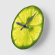 Grönt och gult citronskiva i citrusfrukter i färg av gult och grönt. Realismen, det fruktiga färg verkar brinna från klockan ansikte. Äkta sommartid i färsk färg gör en perfekt köksklocka.