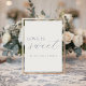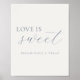 Lägg till en charmig touch till din efterrätssbar eller förmånstation! Denna skylt "Kärlek är sött" har elegant dammig blå kalligrafi. Det är det perfekta sättet att inbjuda gäster att njuta av en godis medan du behåller ditt organiska, eleganta bröllopstema. En del av "Ömt blå blomsterbrölloppskollektionen".