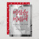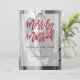 Det här moderna och snyggt julkortet har ett eget bröllop-foto som täcker bakgrunden helt och hållet. En ren vit övertäckning har trendigets röda skripttypografi som säger "Merrily Married", plus ditt nya namn och året med lite gren tillsatt.