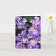 Mappat hälsningskort med foto av lila asters. Tomt meddelande.