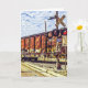 En godstrafik tåg vid en järnvägspassage täcker framsidan av detta uppfällda gratulationskort.
