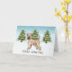Desteis ursprungliga tecknad illustration av en söt, mjukt jackat hund av Wheaten Terrier-rasen. Hund placeras på en vinterscen med tre gröntar nära träd och fallande snö. Bakgrunden är en blå till vit övertoning som ge kallets vintag. Det finns också ett anpassningsbara textområde som nu lyder: "God jul".