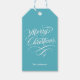 Fin hand blomstrad kalligrafi "God jul". Vita bokstäver på teal. Enkel elegans för dina ge behov av julklapp