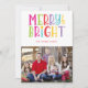 Den här söta designen har färgstark och skarp typografi med meddelandet "Merry and Bright" och utrymme för text och ett foto. Det finns variationer i denna design i vår Zazzle-butik, zazzle.com/store/doodlelulu. Kontakta oss om du vill att den här designen ska ändras för det specifika antalet foton eller om du behöver den här designen som tillämpas på en viss produkt för att skapa ett matchande objekt. Tack så mycket för att du har sett en DoodleLulu-design med två kryp.