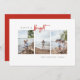 Modern minimalistisk typografi utformar julfotokortet "Merry & Bright". Funktioner, tre lodrät fotoutrymmen, festive Red "bright"-skript och koordinerar rustik red färg-backning. Malltext linjer för namn för familj på framsidan, meddelandet och namn på baksidan.