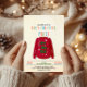 Skaffa redo för skrattretande och festlig roligt med den här vackra julfesten! Designad med en glad röd tröja med ett fet "Ho! Ho! Ho!" design, färgstark ljus och sträng över den övre kanten, den här inbjudan anger perfektens ton för en mysigt, ljusartad helgdag-samling. Oavsett om du är värd för familj, vänner eller medarbetare kommer anpassadet inbjudan att göra party oförglömligt.