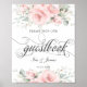 Mjukt rosa blomstergrönska bröllopsgästbokssköld poster