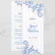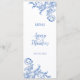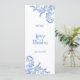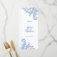 © 2018 Socialite Design Inc. Vackra hörnsnurrar och blomningar, handmålade i mjuka royalets blå vattenfärg, menykort som kompletterar matchande bröllop-samling.