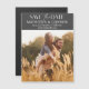 Ett modernt datum för att spara det i ett unikt magnetkortsformat som är designat för att passa ditt favoritfoto på förlovningen. "Spara datumet" visas längst upp på fotot i vitt block och skript, med namn, bröllop datum och bröllop under på en grått-bakgrund. Använda den extra textraden till bröllop webbplats eller ytterligare information.