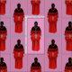 MMIW Kwe med Red Hand Mönster Rosa Fabric av Native American Mode Designer Ayasha Loya.