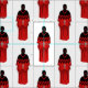 MMIW Kwe med Red Hand Mönster White Fabric av Native American Mode Designer Ayasha Loya.