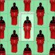 MMIW Kwe Red Hand Mönster Ljust grönt Fabric av Anishinaabe Ojibwe Mode Designer Ayasha Loya of Mode Ayasha.