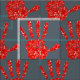 MMIW Red Hand Jeweled Mönster Slate Blue Grått Fabric av Anishinaabe Ojibwe Mode Designer Ayasha Loya of Mode Ayasha.