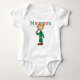 En T-shirt-helgdag-skjorta med en stick figur-unge som äter en candy cane och röd och grönt med texten "Mmmmm".