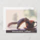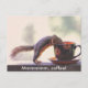 En ekorre har sitt huvud i en kopp kaffe i det här humoristiska fotot. Kaffet kopp och såren är mörk bruna med daisy av ljus orange. Ordet lyder: "Mmmmmm, kaffe!" Ordspråket kan tas bort eller ändras så att alla produkter kan anpassas efter dina behov i kostym.